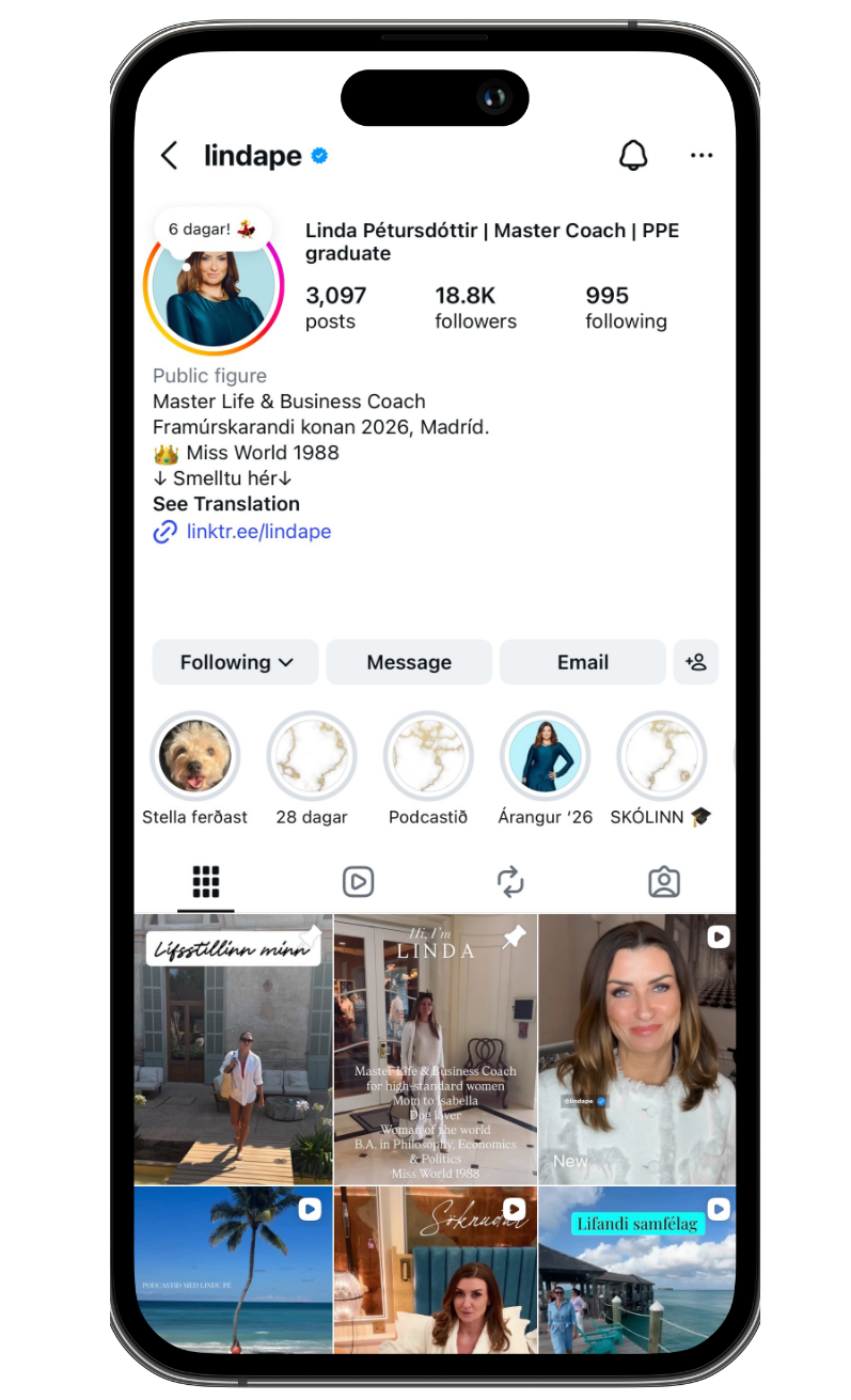 Ég er með frábært, fræðandi og skemmtilegt efni á Instagram sem ég deili daglega.